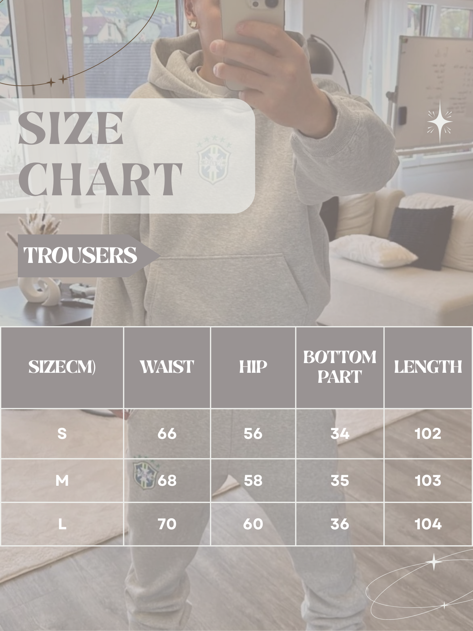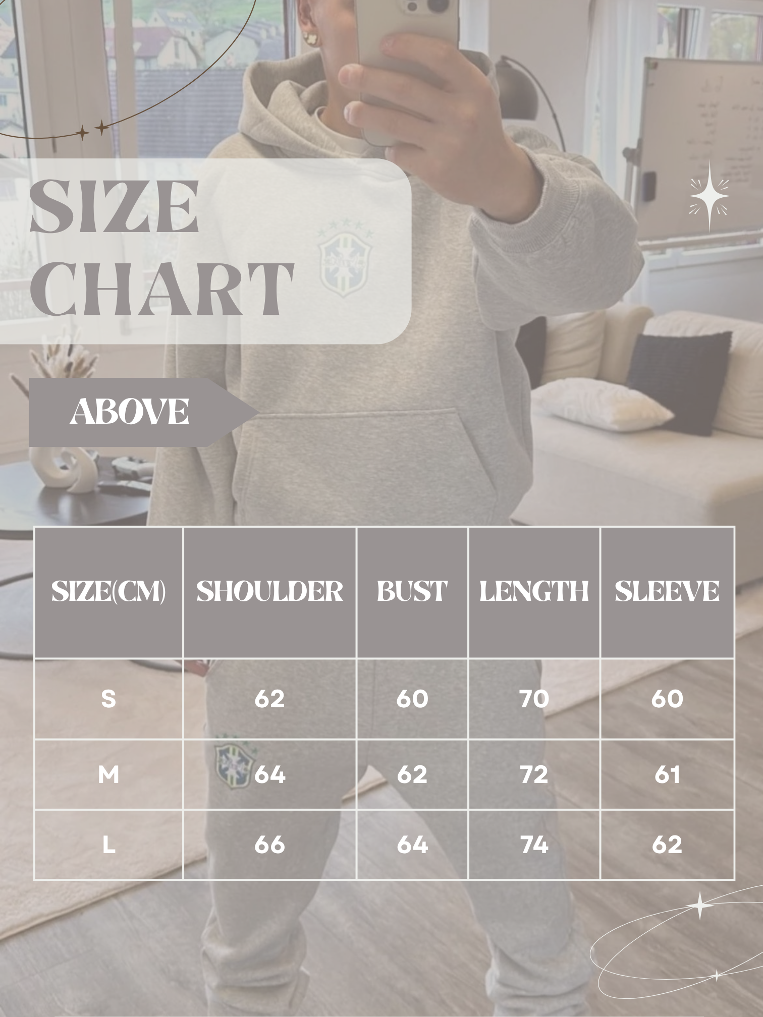 • Example: If you have always worn L, choose size L.