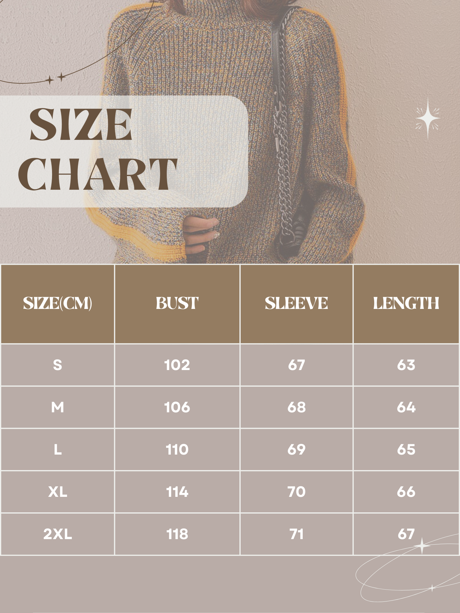 • Design elements: Turtleneck, long sleeves